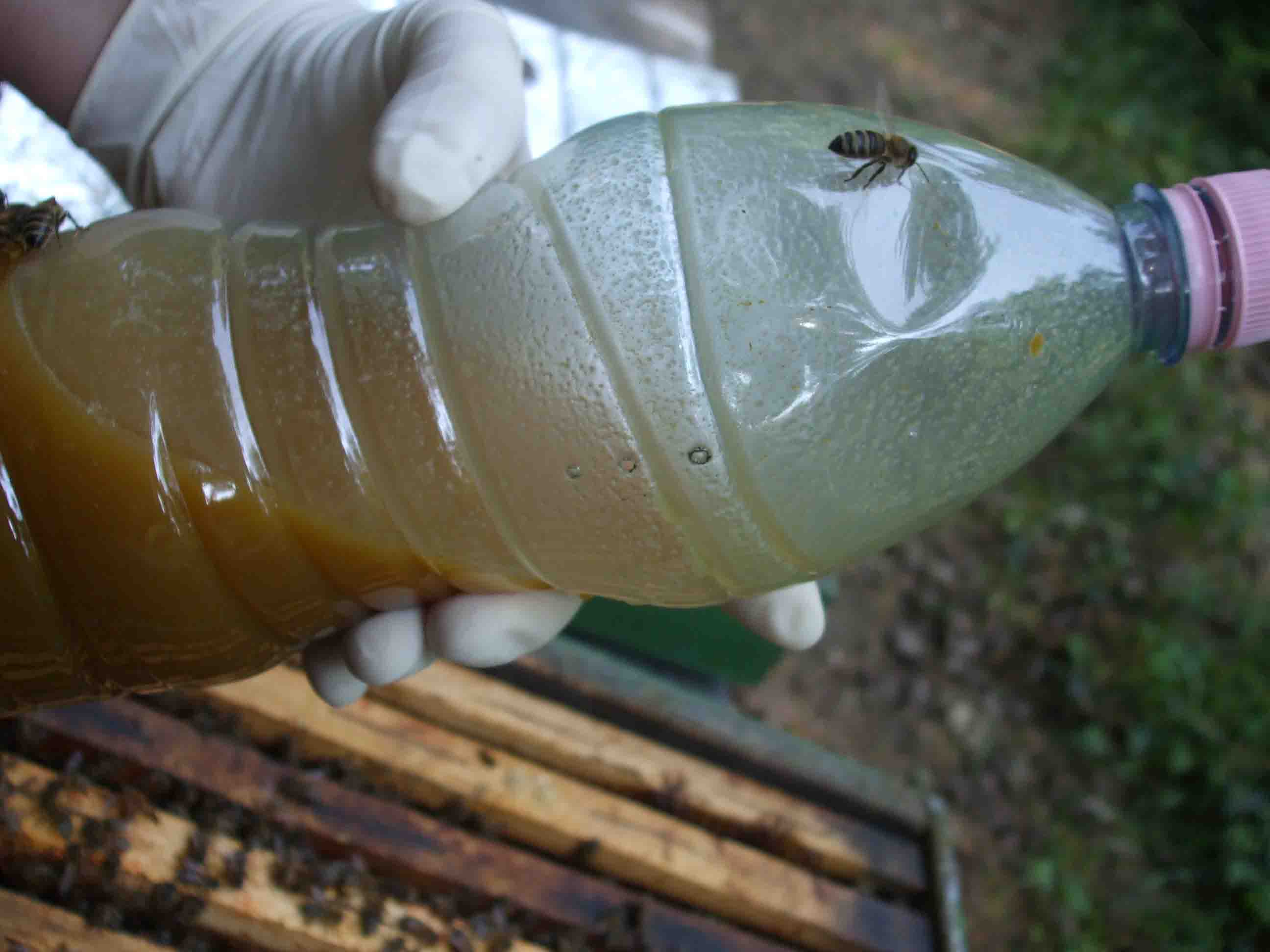 From the begining the bees was inmediately on the product with a strong acepptance, three the days later the frames from this 7 beehives are biger, with wax, and the honey comb was considerably more biger, and with more cell that in the another 7 beehives without the product.