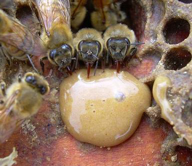 McLeanThree Bees.jpg. Three ladies dining at Cafe Feedbee in a bee hive feeder at Pouawa on the east coast of New Zealand just north of Gisborne. This study is continuing to find the best way to provide honey bees with protein supplementation during periods of pollen dearth in the autumn (fall) and in so doing hoping they will survive winter and be vigorous in the spring.